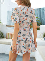 Osez dévoiler vos jambes grâce à la coupe portefeuille de cette Mini Robe à Fleurs qui se prête à de nombreuses morphologies. Ce modèle est court certes mais il n'en reste pas moins très élégant. En effet, son col cache-cœur et ses manches courtes volantées apportent de la douceur à l'ensemble et contrebalance bien la longueur de cette pièce, ce qui en fait un atout de taille pour l'été !