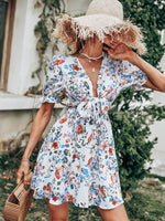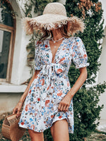 Un modèle des plus ravissants, cette Robe Courte à Fleurs Chic sait faire la différence tout en subtilité. Son superbe décolleté en v plongeant saura mettre en avant votre poitrine et ses motifs floraux délicats insufflent de la fraicheur à votre garde-robe. Sa coupe courte fluide laissent entrevoir les jambes pour une allure estivale et chic. Son nœud permet de marquer la taille, parfait pour souligner votre jolie silhouette.