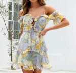 Cette douce Robe Courte Imprimé Floral est incroyablement mignonne. Tout en volants que ce soit aux épaules ou bien sur le bas de la robe, ces volants ont pour effet d'apporter une douceur extrême à cette Robe Florale. De plus, une légère sensualité est amenée par ses tressages notamment au niveau de la poitrine, en effet celle-ci est fermée et est ajustable par ce cordon tressé au style bohème ! Cette Robe Fleurie est un petit écrin de douceur !