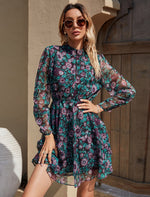 Pour une sortie avec des amis comme au travail, cette Robe Fleurie Courte Col Montant  et manches longues saura faire son effet. Parfaite pour toutes les morphologies, sa fronce marque la taille pour un effet élégant et raffiné qui mettra en valeurs vos courbes. Les couleurs froides aux  motifs floraux, eux, apportent avec goût la touche de chic qui fait le charme de ce produit. Assortie à des escarpins, ou de belles bottes à vos de choisir votre style pour cette jolie Robe Fleurie