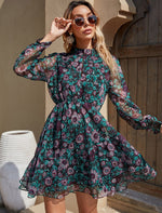 Robe Fleurie Courte Col Montant - Vignette | Robe Fleurie