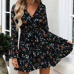 Pour rester chic qu'elles que soient les circonstances cette Robe Fleurie Courte Hiver est l'idéal. En effet, ce modèle à la coupe trapèze dispose de tous les atouts d'une robe chic, un col en V, une allure fluide et vaporeuse. Celle-ci est aussi cintrée à la taille et ses manches longues rajoutent du charme, portez là avec des bottines en cuire et le tour est joué !