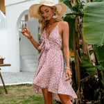 Lorsque vous vous rendrez à un mariage en portant cette magnifique robe rose pale, il est certain que vous ne passerez pas inaperçue ! Se terminant juste au dessus des genoux, ce modèle très fluide peut sembler bien sage ; mais c'est sans compter sur le nœud à la poitrine qui vient amorcer un décolleté plongeant à couper le souffle. Un vrai petit bijou !