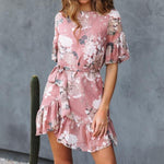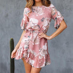Cette Robe Courte Fleurie Rose Pastel est parfaite pour les périodes estivales !