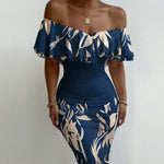 Robe de Soirée Fleurie Col Bateau