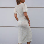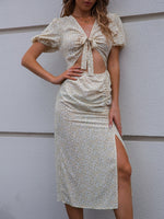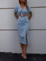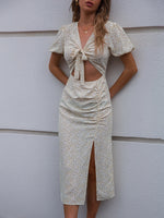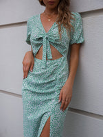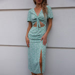 Vous ne savez plus quoi porter pour rester original et chic à la fois ? Voici, pour vous cette Robe Fleurie Col Nœud ! Dans une coupe mi-longue ajustée près du corps ce modèle élégant avec son col fermée par un gros nœud sur la poitrine, puis juste en dessous de celle-ci se trouve une jolie ouverture pour apporter le glamour de cette tenue.