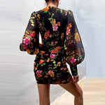 Soyez au top de l'élégance dans cette Robe Fleurie Drapée Manches Longues parfaite pour vos festivités !