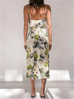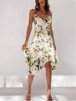 Cette Robe Fleurie Mi-Longue de Cérémonie dispose d'une coupe mi-longue confortable grâce à sa fluidité elle vous permettra de danser sans aucuns soucis lors de vos soirées. Cette Robe Fleurie Invitée est aussi très élégante et se prête facilement aux cérémonies, elle met particulièrement bien la poitrine en valeur grâce à son col en V inspiration cache-cœur.