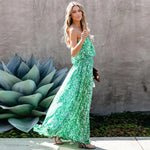 Cette Robe Bohémienne Florale convient à toutes les morphologies qu'elle met en valeur grâce à son col bateau laissant voir les épaules. Cette Robe Florale est longue et arrive jusqu'en bas des pieds elle est donc facile à porter avec des talons ou autres chaussures plates à votre guise !
