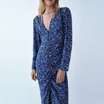 L'allure longiligne de cette Robe Fleurie Tendance Hiver 2021 est unique et c'est ce qui fait tout son charme. Son style vintage est bien marqué et apporte le caractère de la robe, en effet, sur toute sa longueur, ce modèle dispose d'une fronce qui l'habille joliment et dessine la silhouette en la moulant.
