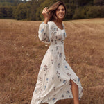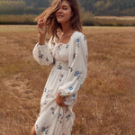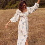 Avec son allure printanière vintage cette Robe Longue Blanche Fleurie nous prend par les sentiments. Sa taille est ajustée par une bande élastique pour la mettre en valeur et ses manches longues bouffantes renforcent son caractère rétro ainsi que son col carré qui met merveilleusement bien la poitrine en valeur. Tous ses détails rendent ce modèle d'une douceur incroyable.