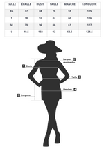 - Coupe : robe longue ouverte devant
