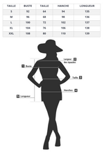 - Coupe : robe longue évasée fluide