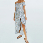 Courte devant, longue derrière, cette Robe Longue Fleurie Asymétrique joue sur les longueurs pour proposer une silhouette à la fois très élégante et ultra sexy. Avec ses manches tombantes dévoilant de sublimes épaules dénudées et sa taille marquée par un élastique, ce modèle met en avant les courbes féminines pour une silhouette terriblement sensuelle notamment grâce à sa maxi fente avant. A vous les soirées d'été !