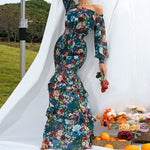 Ne résistez plus et succombez au charme absolu de cette Robe Longue Fleurie Fluide Col Bateau à l'esprit bohème. En effet, cette Robe Fleurie Col Bateau à tout pour plaire, en laissant découvrir ses épaules, elle est pourvue d'une superbe coupe sirène fluide qui lui apporte toute sa sensualité, on craque !
