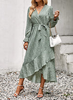 A l'esprit casual chic cette Robe Longue Fleurs Manches Longues dispose d'un coupe portefeuille, devenue maintenant un incontournable de notre garde robe. En effet, son col cache-cœur met parfaitement la poitrine en avant ainsi que ses manches longues et sa coupe fluide qui offrent un style contemporain et élégant.