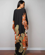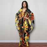 Cette superbe Robe Longue Manche Ample Fleurie convient à toutes les morphologies grâce à sa large sélection de taille, tout le monde y trouve son bonheur ! A l'esprit hawaïen avec ses motifs de fleurs abstraites, elle est pleine de couleurs et d'originalité. Sa forme est très longue et ample et est facile à porter, son petit plus, sont ses manches chauve-souris très évasées qui offrent tout le charme de cette Robe.