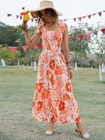 Osez portez de la couleur et pourquoi pas le orange ? Grâce à cette superbe Robe Maxi Grosses Fleurs !