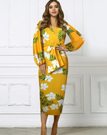 Lumineuse et élégante sont les mots qui définissent cette magnifique Robe Moulante Fleurie Jaune !
