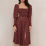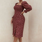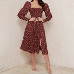 On ne peut s'en lasser, le style rétro de cette Robe Automne Fleurie est juste à tomber par terre ! On y retrouve tous les marqueurs vintage comme les manches bouffantes le col carré qui sublime le décolleté ainsi que sa fente latérale qui ajoute de la sensualité.