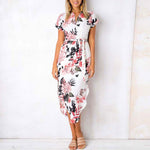 Avec son style casual décontracté et chic à la fois cette Robe Fleur Rose est pourvue de deux fentes latérales qui offrent tout le charme de ce modèle. De plus, elle dispose d'un col en V à revers fermé à la taille par une ceinture à nouer à votre convenance. Dans un forme ajustée mi-longue elle est idéale pour le quotidien et convient à tous types de morphologies, alors vous s'hésitez encore ?