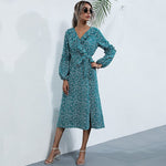 Avec sa forme portefeuille indémodable qui avantage merveilleusement bien les silhouettes cette Robe Fleurie Automne deviendra vite la nouvelle pépite de votre dressing hivernale. De plus, elle est parfaite pour se rendre au travail ou bien rejoindre ses amis dans un restaurant, ainsi avec son col cache-cœur habillé de volants, elle est très séduisant. Cette Robe Fleurie Automne est mi-longue avec de longues manches lanternes et dispose également d'une fente latérale.