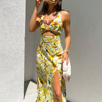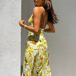 Aux tonalités de jaune cette Robe Fleurie avec Fente met parfaitement le bronzage en valeur. Son look sexy est marqué par fente latérale ainsi qu'une subtile ouverture juste en dessous de la poitrine. En plus, de cela cette robe dispose de tous les marqueurs sensuels notamment grâce à son dos ouvert et ses bretelles très fines. Alors si vous souhaitez mettre vos courbes en valeur rien de tel que ce magnifique modèle !