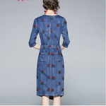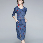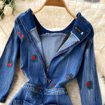 Ce modèle de robe en jean vous rendra ultra branchée, ses petites fleurs rouge brodées un peu partout ajoutent l'esprit vintage de cette Robe Fleurie Mi-Longue Jean. Cette Robe fleurie jean ne passe pas inaperçue et apporte le pep's à votre dressing. Cette coupe droite qui marque la taille et sa matière jean se suffisent à elle même. Zoom sur la petite fente avant qui apporte le confort pour la porter ainsi que la touche séduisante.
