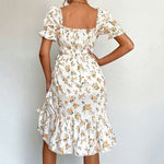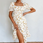 On adore toute cette Robe Fleurie Petites Manches, elle offre une lueur très printanière tout en fraicheur. Sa coupe évasée au style bohème est adorable. On remarque sur ce modèle, son col carré cœur qui encadre parfaitement la poitrine pour la mettre joliment en valeur et enfin ses petites manches bouffantes très mignonnes qui structurent les épaules.