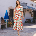 Amenez le printemps avec vous dans cette Robe Mi-Longue à Fleurs Rouge !