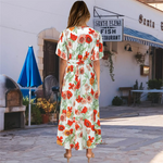Vous rêvez de promenades sous les rayons du soleil printanier ? Alors cette robe est faite pour vous ! Avec son tissu fluide et confortable, cette Robe Mi-Longue à Fleur Rouge deviendra vite l’une de vos pièces maitresses. Dans une coupe élégante à souhait tout en fluidité elle met en valeur toutes les morphologies avec son décolleté en V resserré juste en dessous de la poitrine, ses manches amples adoucissent la silhouette et ses grosses fleurs rouge amènent le style bohème avec chic !