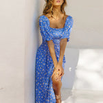 Découvrez cette superbe Robe Mi-Longue Fleurie Manche Bouffante au style rétro !