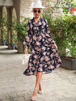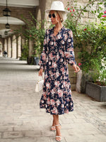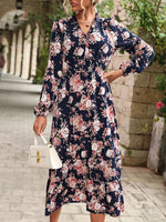 Cette Robe Mi-Longue Fleurie Manches Longues à l'esprit bohème est parfaite pour cet automne !