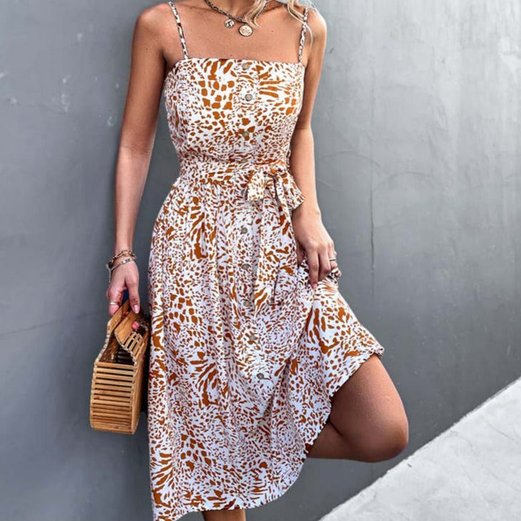 On adore le modèle de cette Robe Midi à Fleurs grâce à son allure bohème. En effet, ses petites bretelles très fines, sa ceinture assortie et le détails de ses petits boutons sur toute sa longueur apporte tout son charme. Portez là avec des talons ou des sandales selon votre envie !