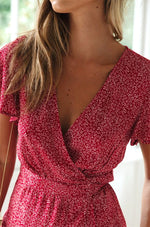 Robe Fleurie Rouge Portefeuille Mi-Longue – Élégance et fraîcheur au quotidien