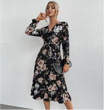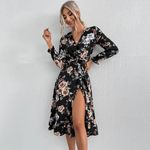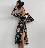 Robe Portefeuille Fleurie Manches Longues