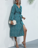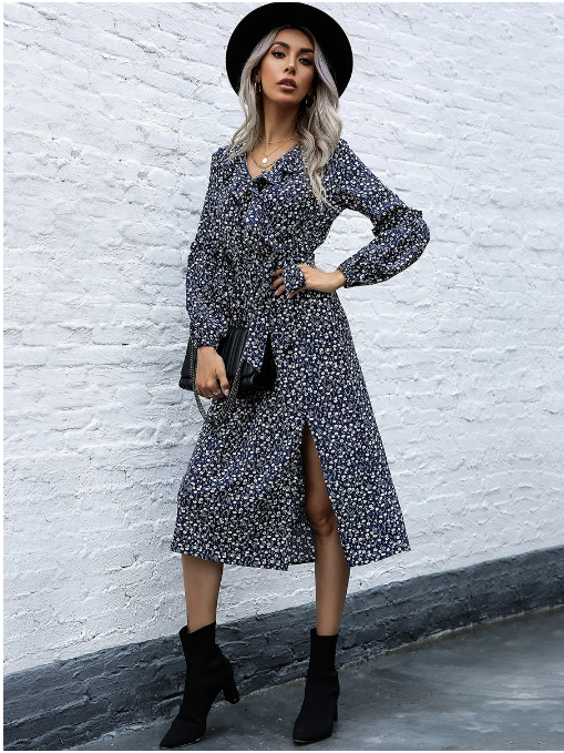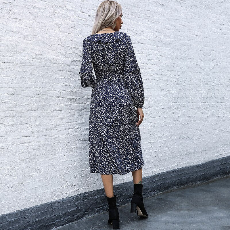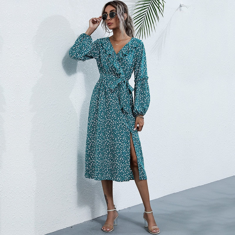 Avec sa forme portefeuille indémodable qui avantage merveilleusement bien les silhouettes cette Robe Fleurie Automne deviendra vite la nouvelle pépite de votre dressing hivernale. De plus, elle est parfaite pour se rendre au travail ou bien rejoindre ses amis dans un restaurant, ainsi avec son col cache-cœur habillé de volants, elle est très séduisant. Cette Robe Fleurie Automne est mi-longue avec de longues manches lanternes et dispose également d'une fente latérale.